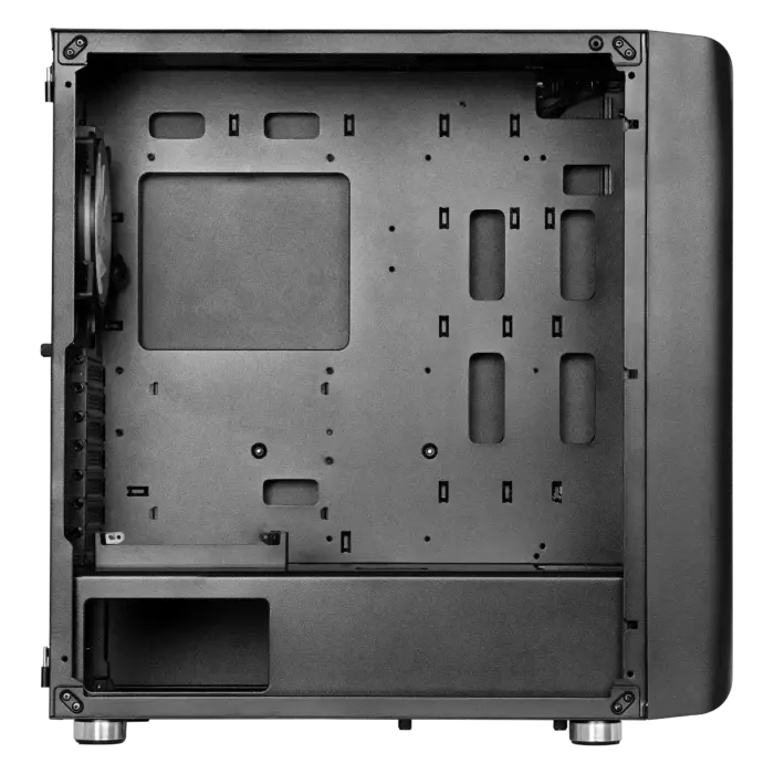 سایر مشخصات فنی کیس باز شدنِ پنل جلو بدون نیاز به ابزار , باز کردن پنل راستی بدون نیاز به ابزار , باز کردنِ پنل شیشهای بدون نیاز به ابزار , برآمدگی و فرورفتگی در محل قرارگیری مادربرد جهت مقاومسازی سینی , بُرّنده نبودنِ لبههای داخلیِ کیس , دارای کابلهای باکیفیت برای پنل کیس , دارای لرزشگیر در زیر پایههای کیس , فنهای کاملاً بیصدا , نصبِ بدونِ ابزارِ درگاههای توسعه