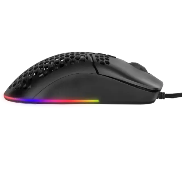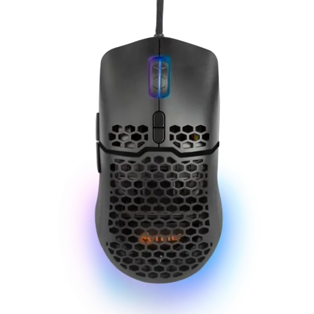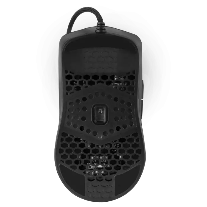 ماوس MCR-8000B دارای نورپردازی ARGB هست و ظاهر ماوس هم دارای سوراخهایی به شکل کندوی عسل است که علاوه بر زیبایی، منجر به سبک شدن ماوس هم شده است.
